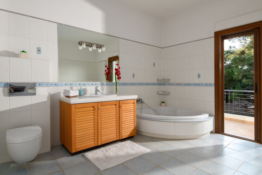 Yes, there is a hot tub. You can find out more about this and the other facilities at Amaltheia Villa on this page.