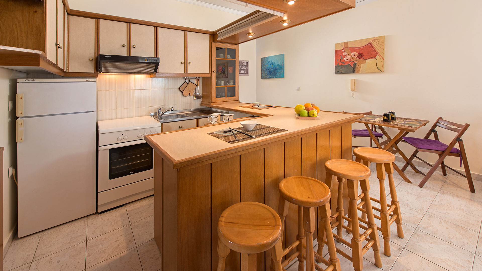 The air-conditioned Apartment Dream Holidays boasts a bathroom stocked with a bath, while free toiletries and hairdryer are also offered. It features an open-plan kitchen area and living room. A flat-screen TV with local channels and a DVD player are also available.