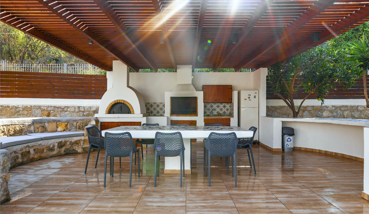 With 3 bedrooms, this villa is ideal for a romantic getaway or a family adventure in Rhodes. The 2 bedrooms feature an inviting king-size bed while the other one is furnished with 2 single beds. Each bedroom features a full-size ensuite bathroom with updated amenities. Even better than these comfortable bedrooms is the spectacular outdoor living area that allows you to enjoy the enviable Greek lifestyle.