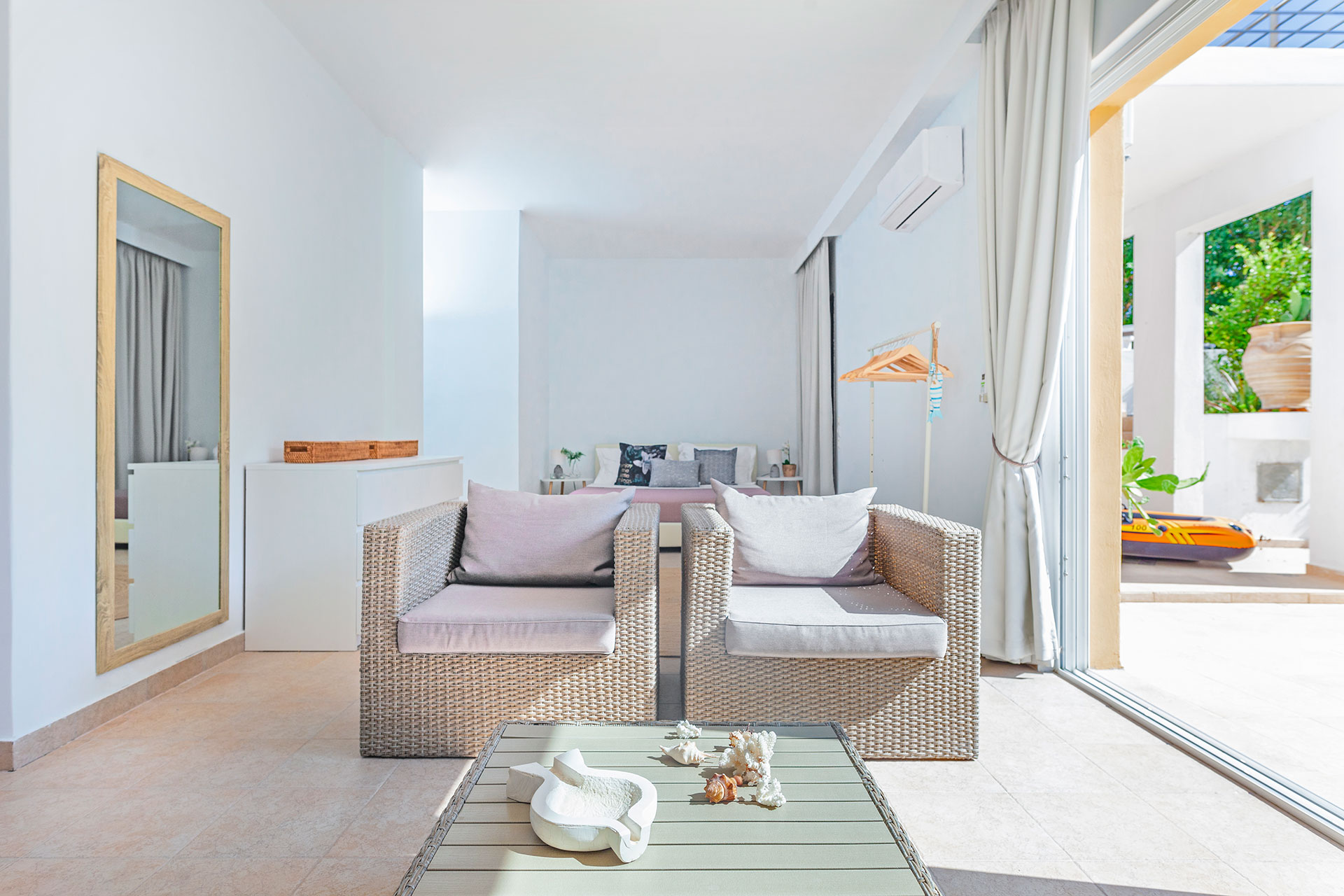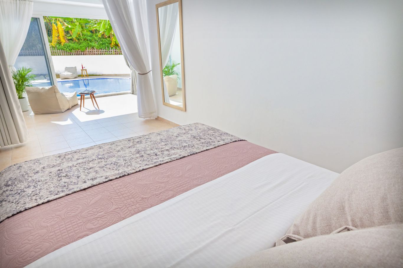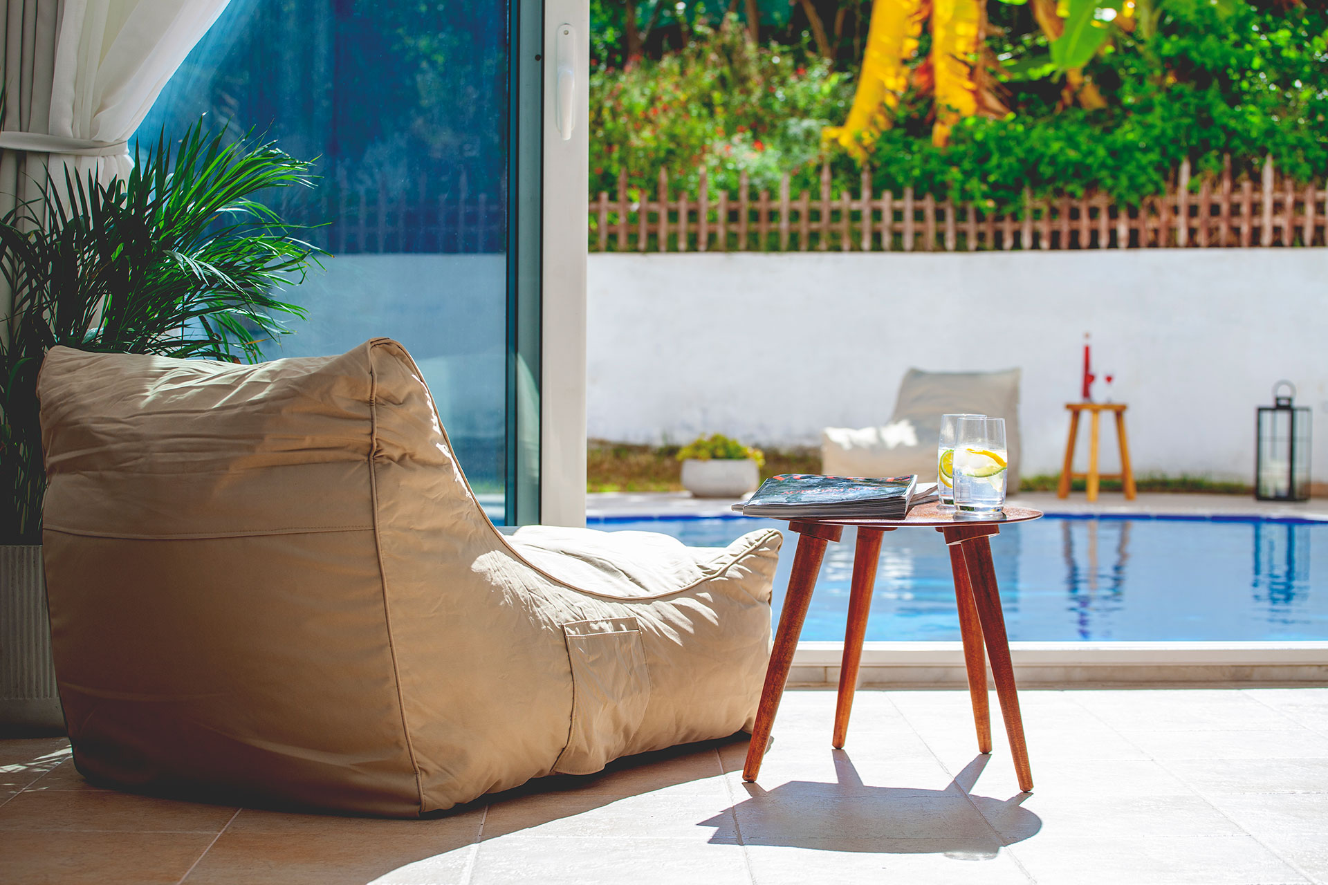 Dip your feet in the swimming pool and enjoy a delicious cocktail, or taste our own wine label by the pool. Revel in the turquoise waters and relax on the sun-loungers while admiring the view of the natural landscape. Our Jacuzzi corner, located in the master room, offers the ultimate invigorating experience for guests who are looking for some extra pampering throughout the day.