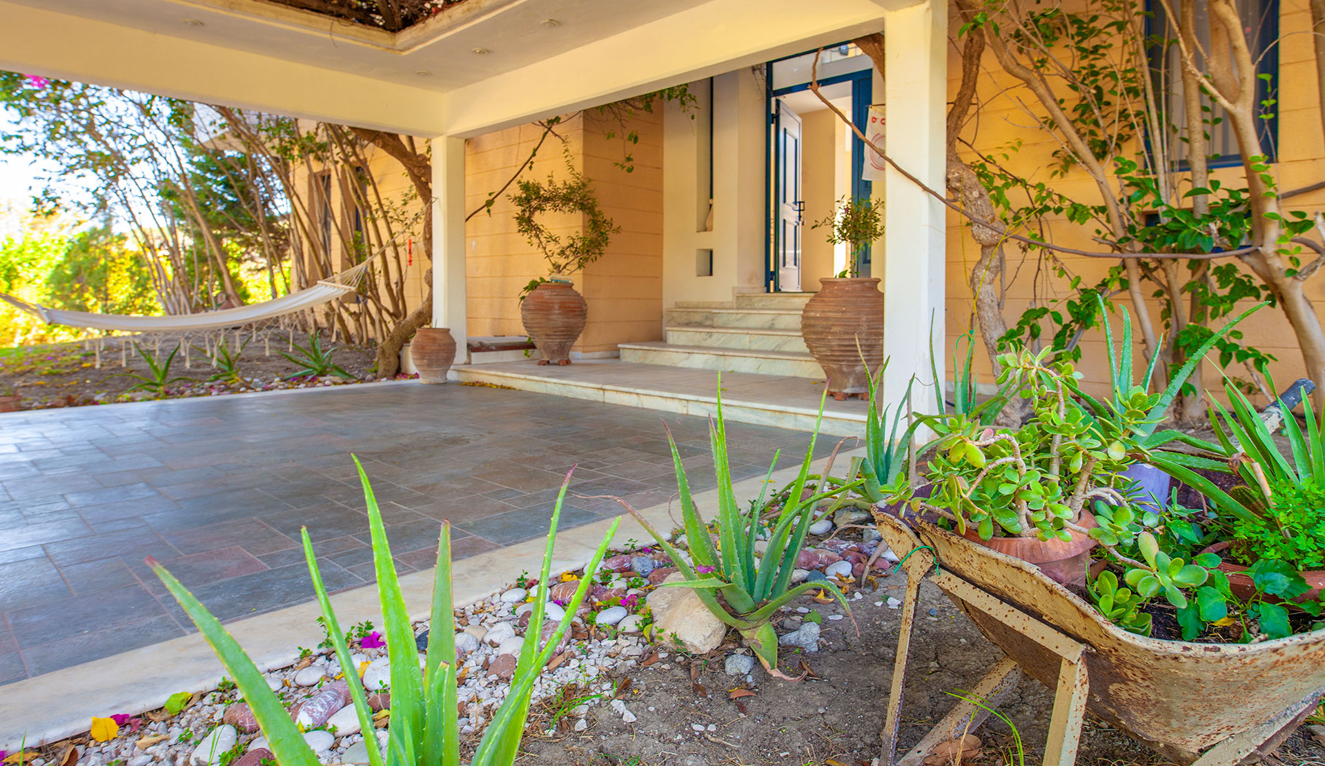 Is the bright Greek sun fondles your skin, during the long summer days, take pleasure in a private, relaxing walk in the spacious garden, enjoy the shade of the trees or even sunbathe on the soft lawn, while your children roam happy and free, playing safely nearby.