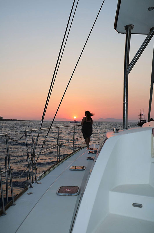 A highlight of your cruise will also be as you enjoy a romantic dinner complete with beer, wine, and juice, aboard the boat. Whilst sailing along the beautiful coastline, admire the unique Rhodes east coast and the spectacular colors of the world–famous Aegean sunset, before you eventually re-enter the port of Mandraki.